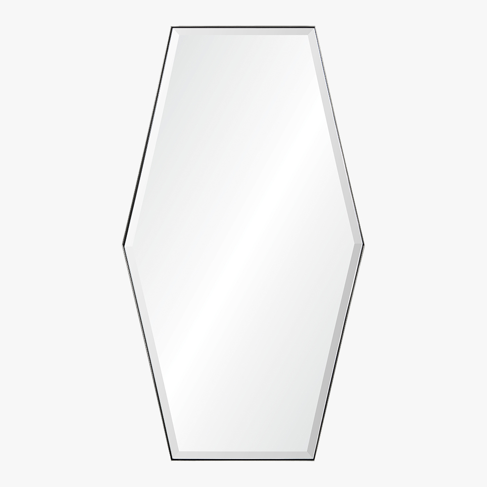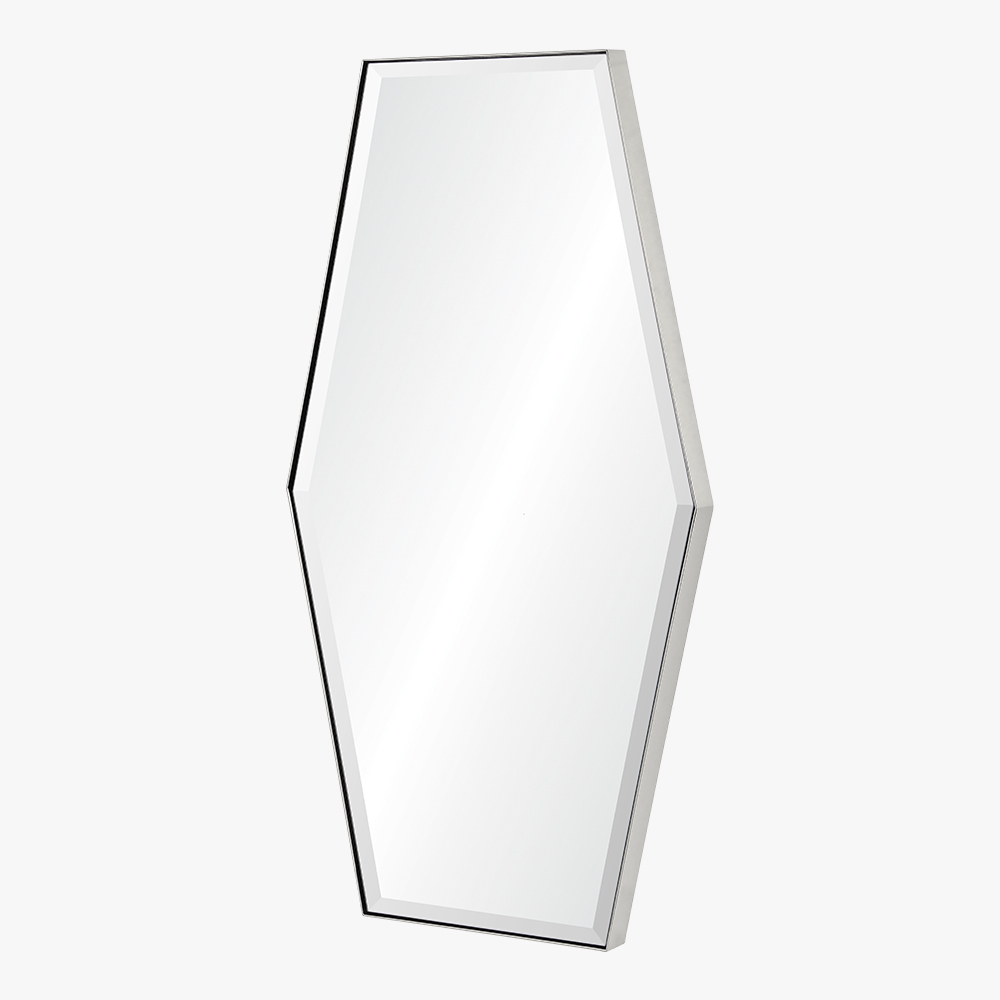 Hand welded polished stainless steel mirror. Beveled center mirror. Cleat hardware provided. Item can hang horizontally or vertically.