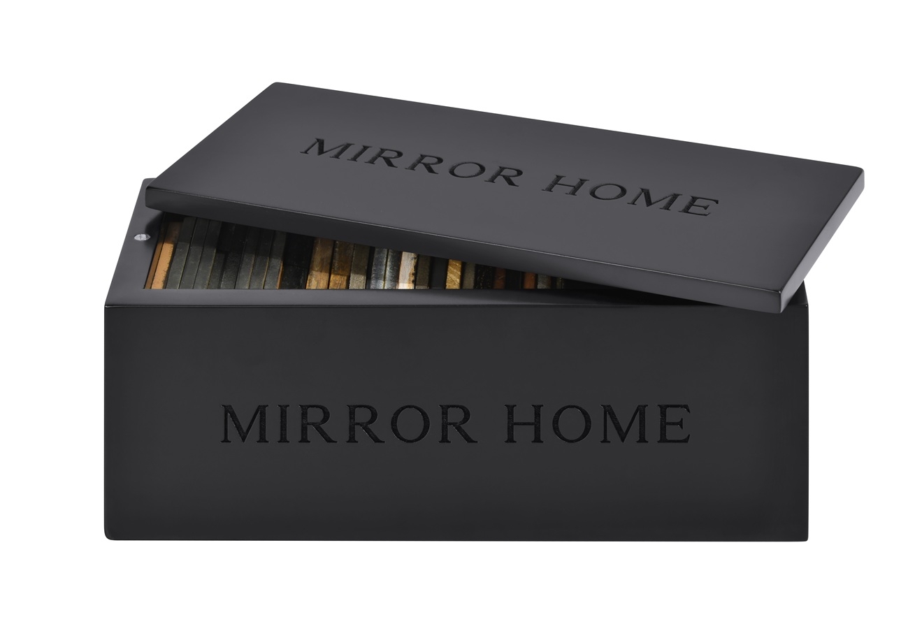 Hand crafted wood box with a magnetized lid to securely store 3” x 3” wood and metal finishes.